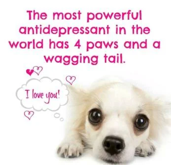 Many dogs are highly intuitive to their owner's emotional state--especially when the owner is sad or feeling anxious. They're great listeners and help to "ground" a person by forcing interaction (what I call the "nose nudge"). When a dog is nudging you to pet it, it forces you to come out of your head (what is distressing you) and enjoy what is right in front of (or on top of!) you.
