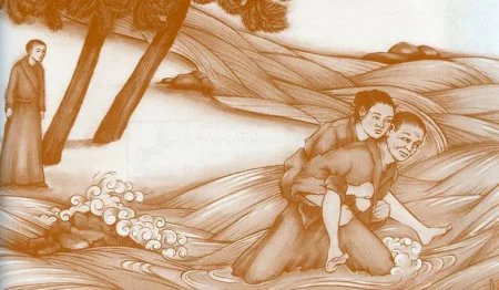A senior monk and a junior monk were traveling together. At one point, they came to a river with a strong current. As the monks were preparing to cross the river, they saw a very young and beautiful woman also attempting to cross. The young woman asked if they could help her cross to the other side. The two monks glanced at one another because they had taken vows not to touch a woman. Then, without a word, the older monk picked up the woman, carried her across the river, placed her gently on the other side, and carried on his journey. The younger monk couldn’t believe what had just happened. After rejoining his companion, he was speechless, and an hour passed without a word between them. Two more hours passed, then three, finally the younger monk could contain himself any longer, and blurted out “As monks, we are not permitted a woman, how could you then carry that woman on your shoulders?” The older monk looked at him and replied, “Brother, I set her down on the other side of the river, why are you still carrying her?”