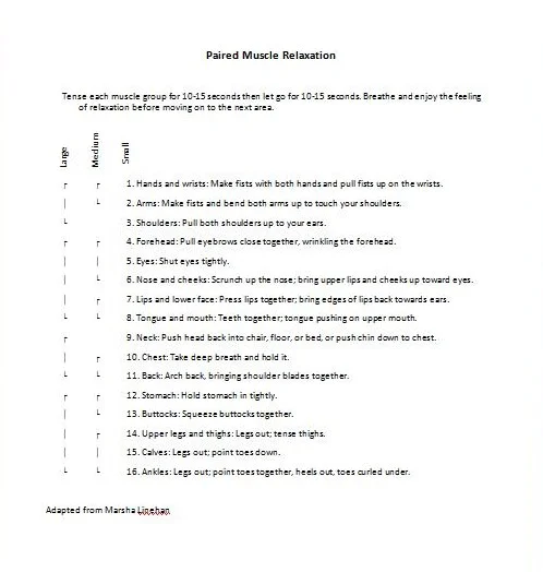 If you would like to try Paired Muscle Relaxation, you might find this list helpful.